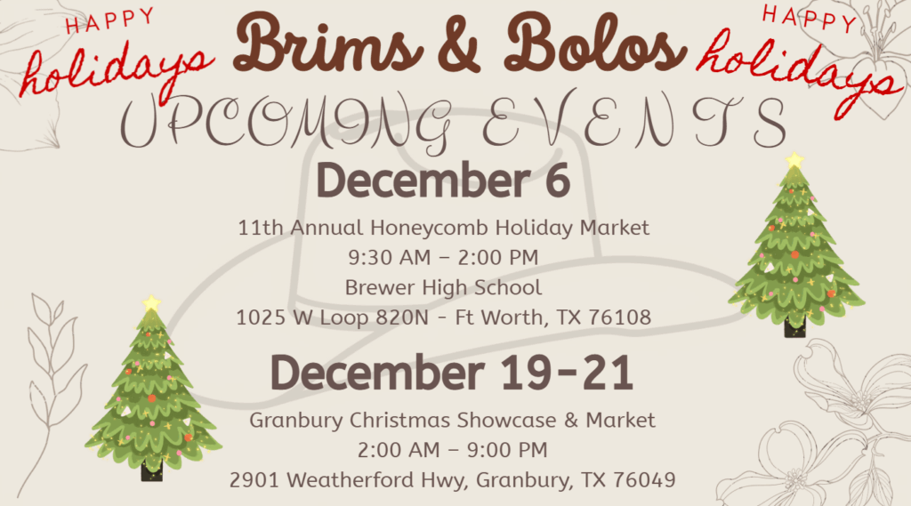 Brims & Bolos is a woman-owned mobile hat design experience created to bring custom Western style directly to your special moments. Born from a single mom’s dream and love for western flair, every detail is infused with heart, handcrafted charm, and a bit of Texas soul. What started as a passion for fashion has become a traveling celebration of creativity, femininity, and frontier spirit.